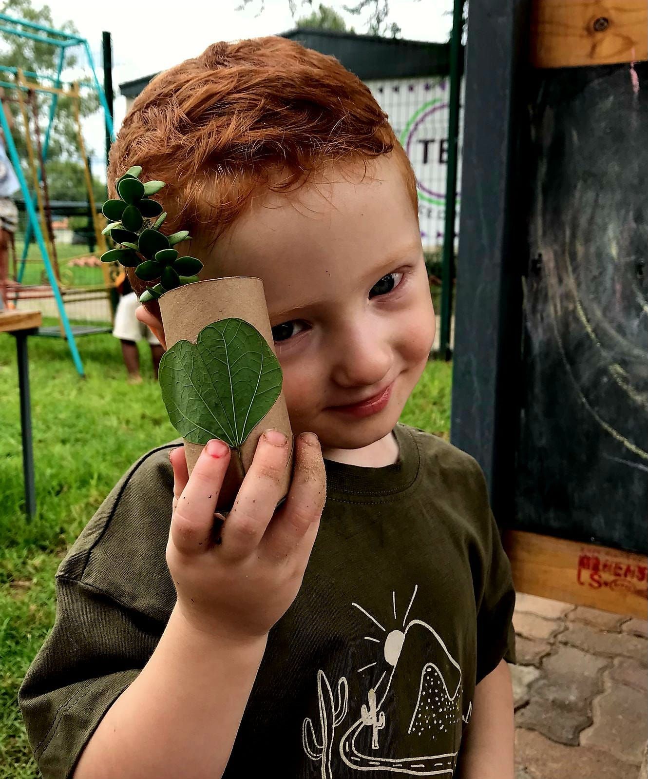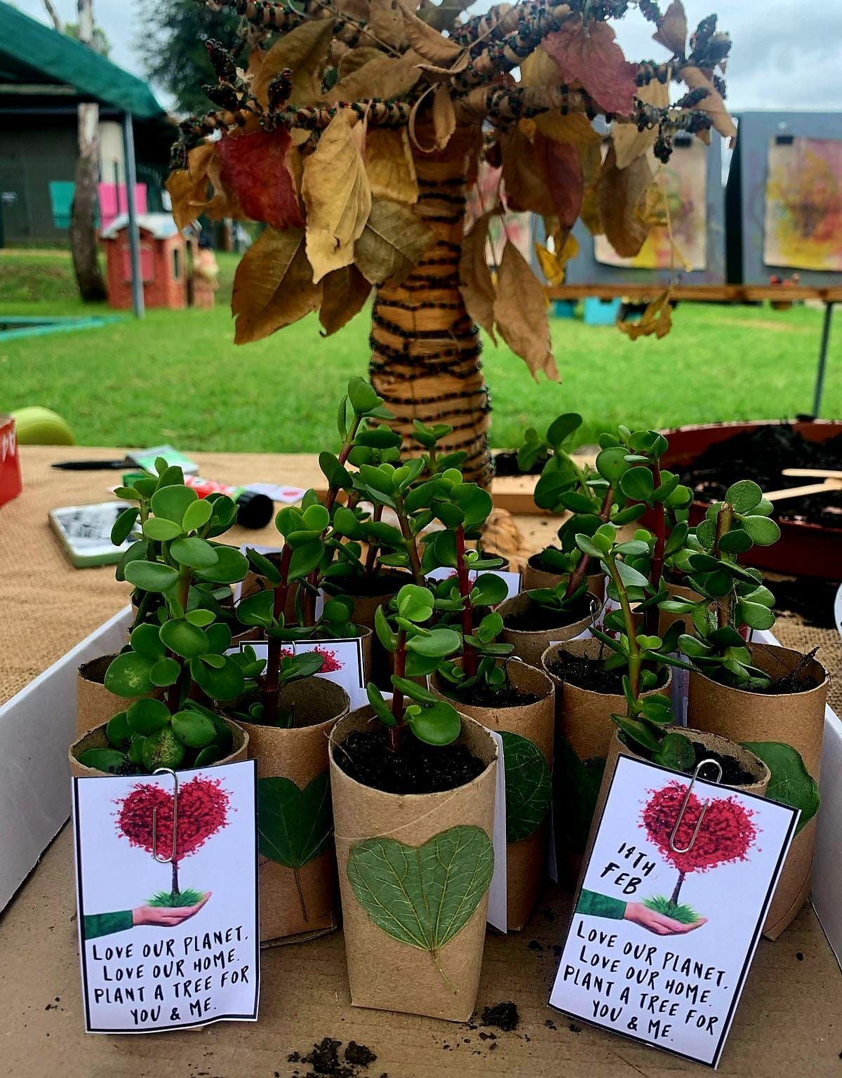 On Valentines Day the Pre-Prep gave some love to our planet. They used recycled toilet roll inners as planting pots. Each child planted a Spekboom in their pot for their parents. The message on the pot was: "Love our planet, love our home, plant a tree for you and me". The Spekboom absorbs large amounts of carbon dioxide from the atmosphere